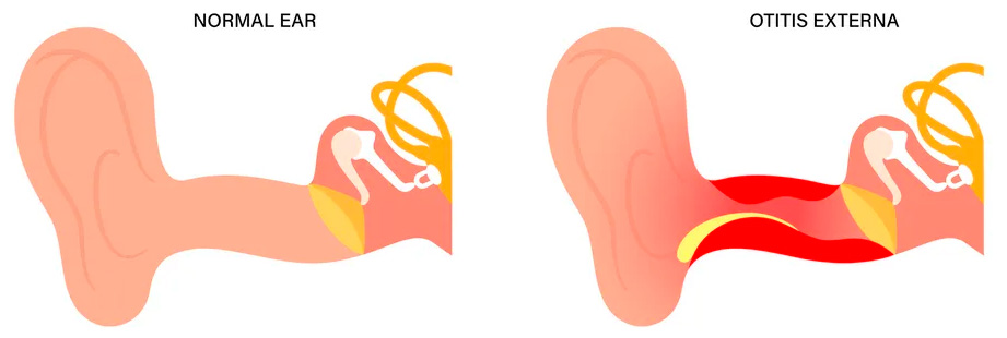 - A otite externa causa dor no conduto auditivo e durante a manipulação, ou seja, quando você mexe na orelha.
