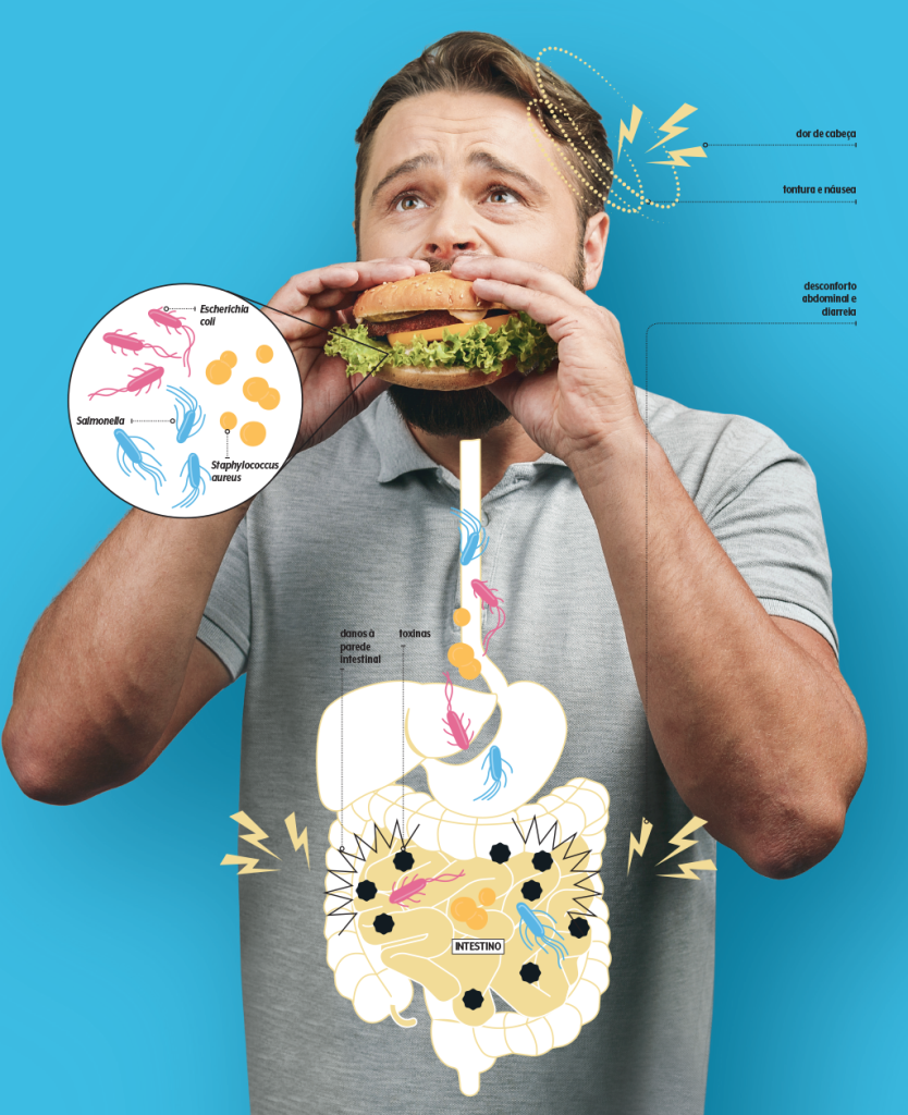 Os responsáveis mais comuns pelos estragos são as bactérias Escherichia coli, presente em carnes; Staphylococcus aureus, de leites e derivados; e Salmonella, encontrada em ovos. As toxinas liberadas por esses micro-organismos danificam a parede intestinal, alterando a permeabilidade e os mecanismos de absorção na mucosa do órgão digestivo.